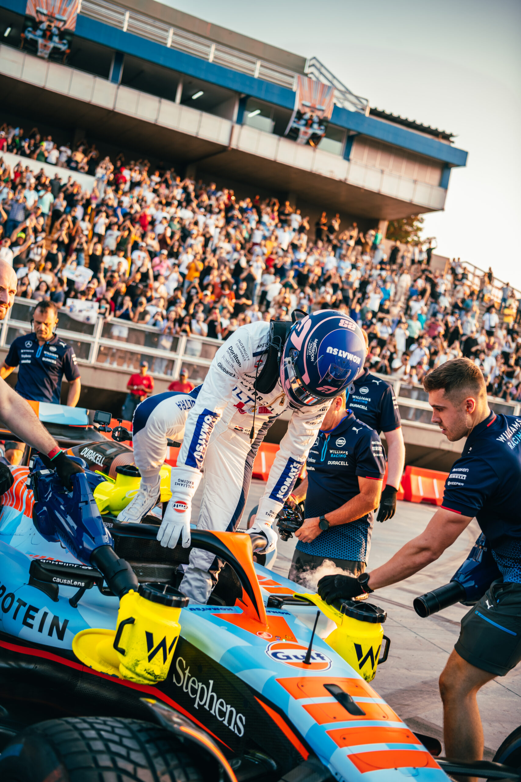 Alex Albon, piloto da Williams Racing, foi uma das grandes estrelas da tarde. Sua performance com o carro FW45, que exibia a icônica pintura “Bolder than Bold”, surpreendeu os presentes. Albon expressou seu entusiasmo pela calorosa recepção dos fãs brasileiros: “Foi incrível ver de perto a paixão dos fãs, aqui, no Brasil, e fazer parte de um evento tão especial para a Gulf e a Williams Racing“, afirmou.