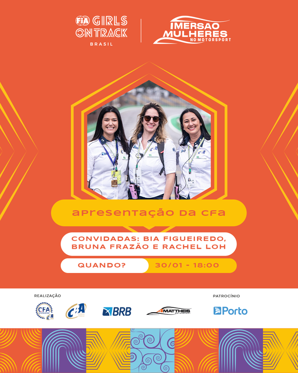 O calendário da Comissão Feminina de Automobilismo (CFA) da Confederação Brasileira de Automobilismo (CBA) para 2025 está em elaboração. Mas a primeira atividade já está programada para 30 de janeiro, às 18h, com palestra inicial da terceira edição da Imersão para Mulheres no Motorsport, criada em 2023 pela engenheira Rachel Loh e pela Equipe AMattheis Motorsport, e a partir de agora realizada em parceria com o selo FIA Girls on Track Brasil (FIA GOT BR).