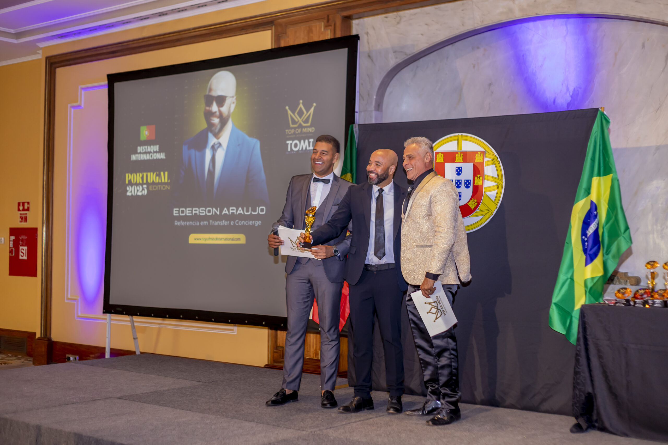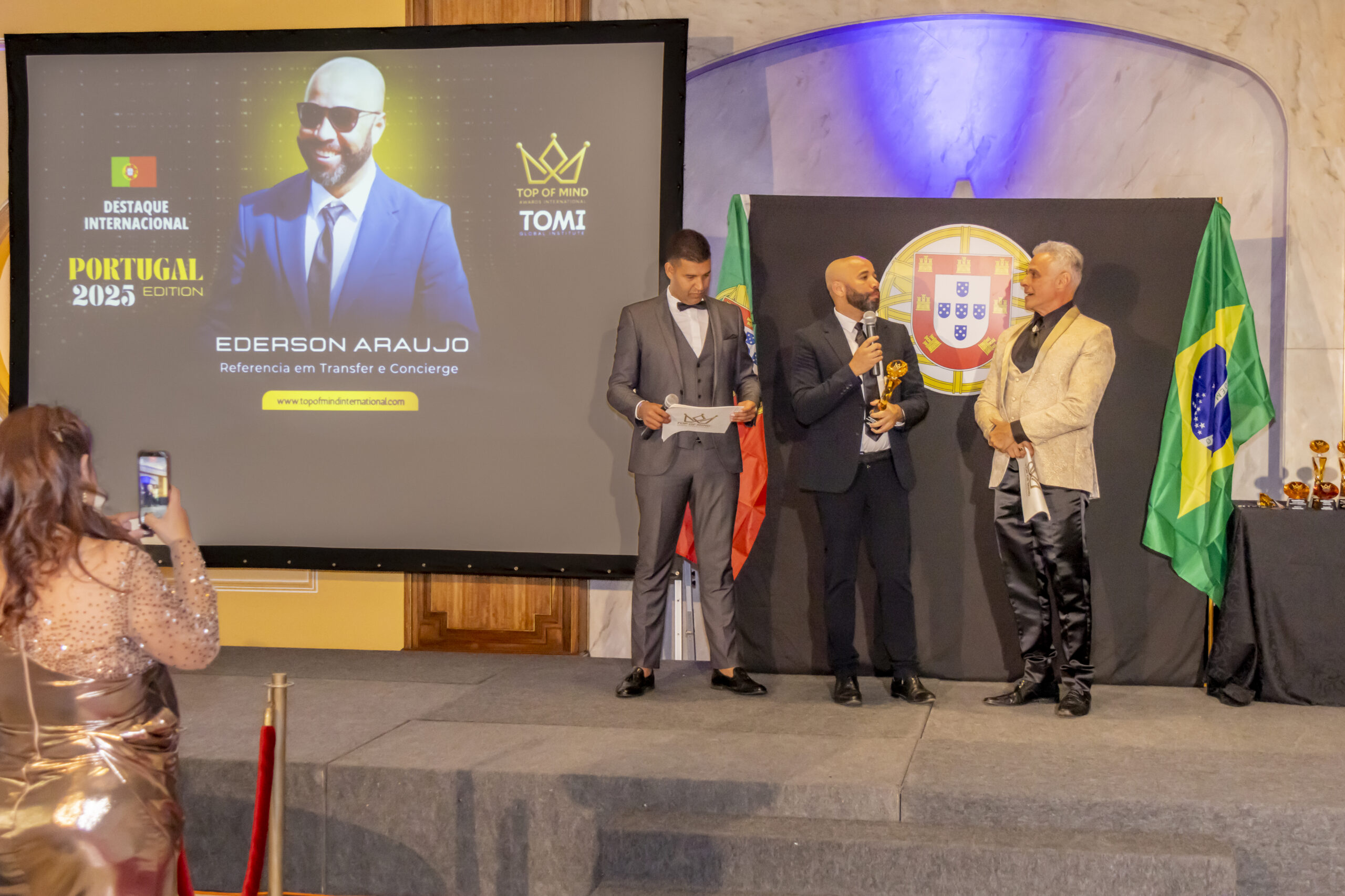 A festa de premiação foi conduzida pelo ator e apresentador Oscar Magrini. O Prêmio, que existe há 10 anos, é anualmente a entregue a empresários estrangeiros de destaque em seus ramos de atividade. Em 2024, a premiação foi realizada em Dubai. Este ano foi em Portugal e em 2026 será em Paris. “Fui convidado para receber o prêmio como transfer e concierge”, explicou. Além de Araújo, uma vereadora brasileira radicada na Inglaterra e outras 10 pessoas também foram laureados neste dia, cada um em sua área de atuação.