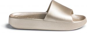 Chinelo Slide Dourada Poofy Salto Plataforma Eva