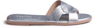 Rasteira Couro Prata Tira Vazada