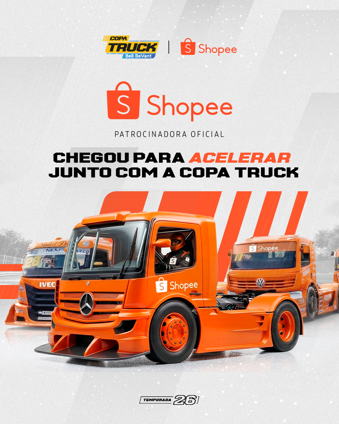 Tem entrega chegando para a Copa Truck Be8 BeVant: a Shopee é a mais nova patrocinadora oficial da categoria. A popular plataforma de e-commerce realizará diversas ativações nas etapas, tanto dentro das pistas quanto nas áreas de relacionamento.