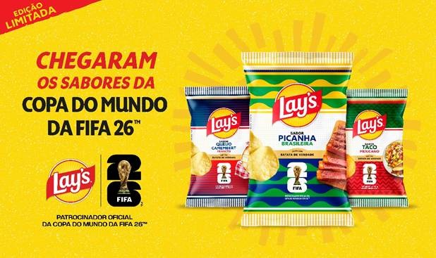 LAY’S® anuncia a chegada de três novos sabores exclusivos ao mercado brasileiro: LAY’S® Sabor Picanha Brasileira, Sabor Taco Mexicano e Sabor Queijo Camembert Francês. O lançamento é parte da estratégia da marca como patrocinadora oficial da Copa do Mundo da FIFA 26™ e reforça o posicionamento de LAY’S® como o snack indispensável para acompanhar as partidas.